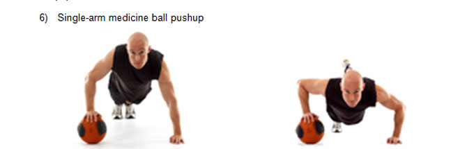 Εκτελέστε τα pushups χρησιμοποιώντας το ένα σας χέρι και στο άλλο τοποθετήστε μια medicine ball αυτό όχι μόνο θα σας βοηθήσει στο χτίσιμο της δύναμης σας αλλά θα ενδυναμώση και τους σταθεροποιητικούς μύες που εμπλέκονται.