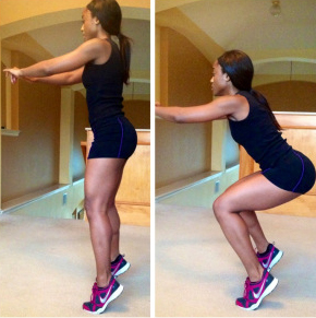 Εκτελέστε τα squats στις μύτες όπως ακριβώς και στη φωτογραφία με αυτό τον τρόπο αλλάζετε τη γωνία που δουλεύουν οι μυς και ειδικά οι γλουτοί.