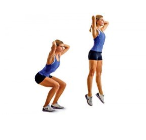 Περνώντας τα χέρια πρώτα πίσω από το κεφάλι εκτελέστε τα squats με έκρηξη.