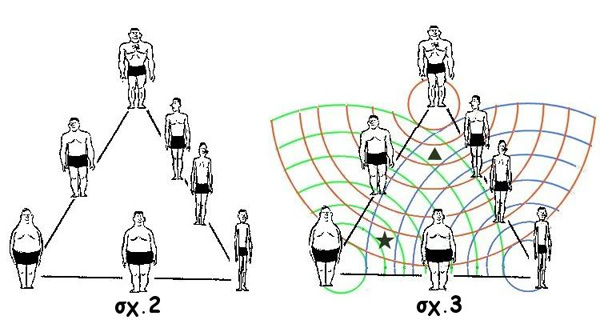 Για να καταλάβετε καλύτερα στο σχ.3 έχω προσθέσει από 7 βοηθητικούς δακτυλίους με κέντρα τις κορυφές του τριγώνου οι οποίοι αριθμούνται από έξω προς τα μέσα, δηλαδή ο εξωτερικός δακτύλιος έχει το νούμερο 1 και ο κεντρικός το 7.