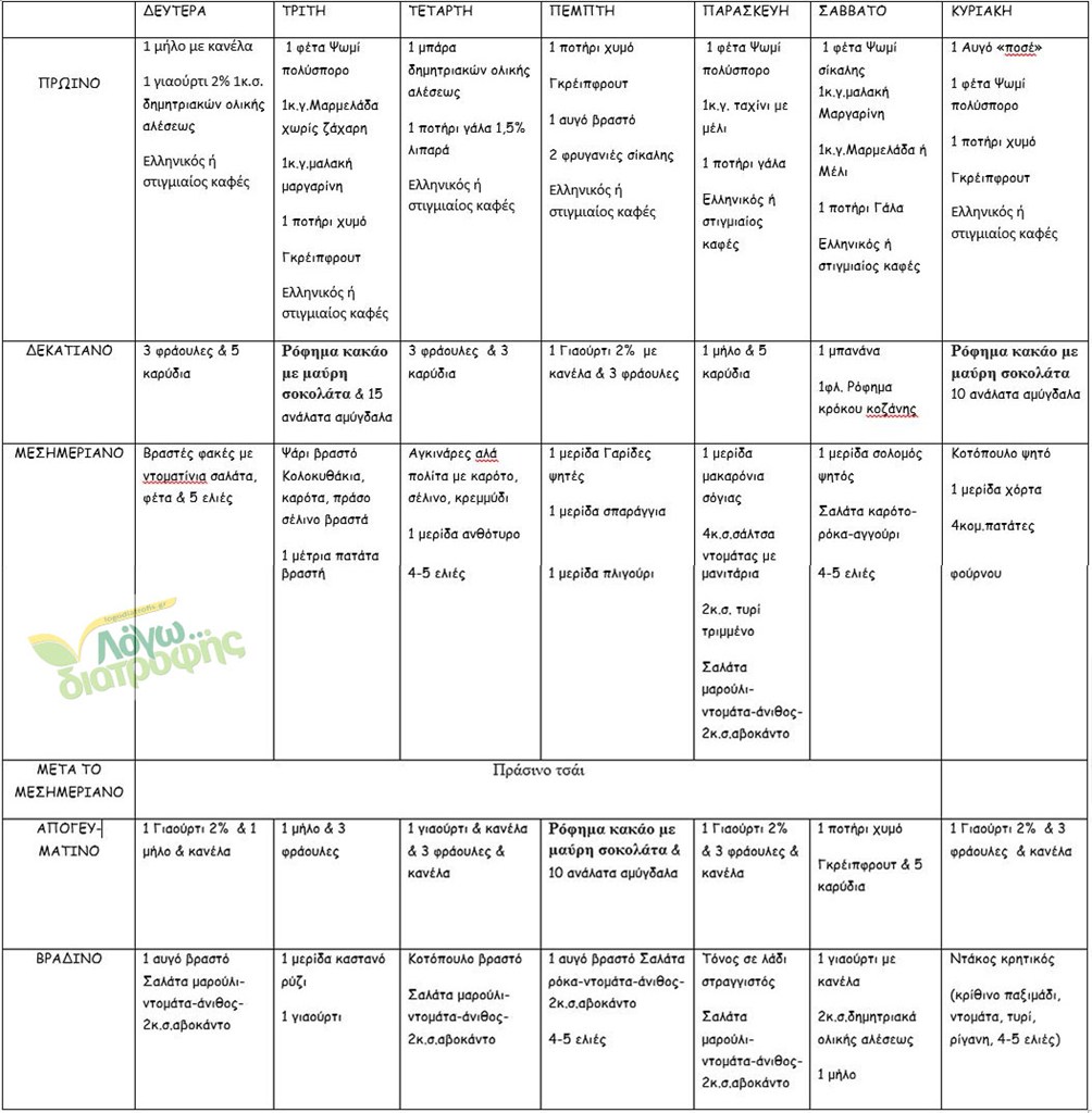 Δείτε ένα ενδεικτικό διατροφικό πλάνο