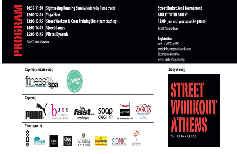 Μια νέα,ετήσια,μοναδική εμπειρία υπαίθριας άσκησης,το Fitness Marathon ,θεσπίζεται από το Street Workout Athens .Μια ημέρα γεμάτη γυμναστικές δραστηριότητες οργανώνεται στις 26 Απριλίου,στο Αθλητικό Πάρκο Ιωάννης Φωκιανός,απέναντι από το Καλλιμάρμαρο,όπου στεγάζονται οι εγκαταστάσεις των διοργανωτών.