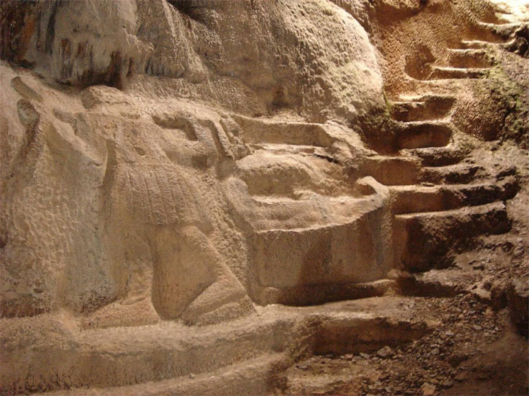 Τα πρώτα ίχνη κατοίκησης στο σπήλαιο χρονολογούνται από τον 6ο αιώνα π.Χ. Σύμφωνα με τις επιγραφές στο σπήλαιο, το σπήλαιο διαμορφώθηκε σε ιερό από το Θηραίο γλύπτη Αρχέδημο, ο οποίος το διακόσμησε και σκάλησε σκαλοπάτια, επιγραφές και ανάγλυφα, με πιο σημαντικό αυτό που τον απεικονίζει να κρατάει σμίλη και σφυρί και ένα ακέφαλο άγαλμα θεάς καθισμένη σε θρόνο. Έκ τότε το σπήλαιο αποτέλεσε χώρο λατρείας μέχρι τον 3ο αιώνα π.Χ., όταν και εγκαταλήφθηκε.