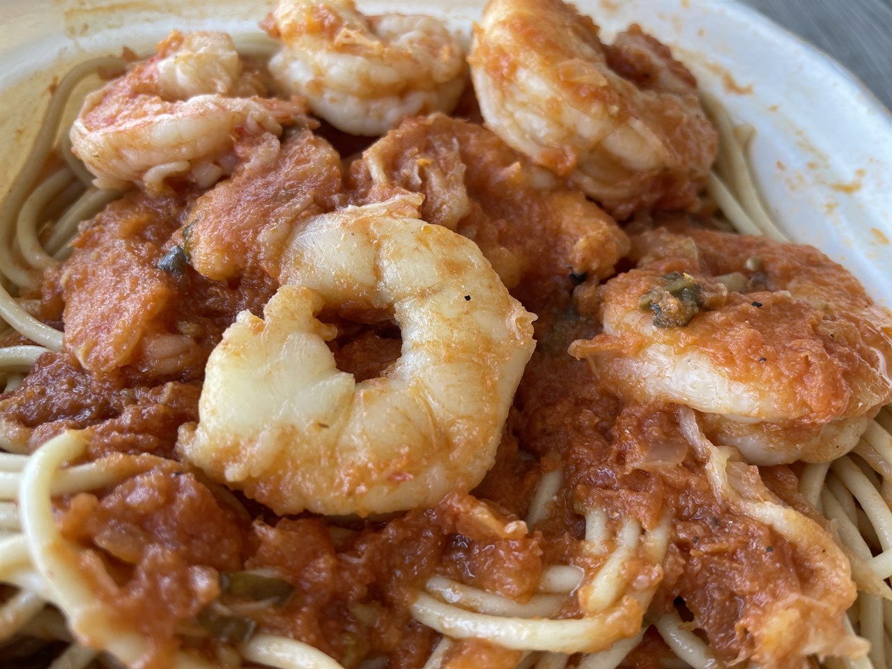 Γαριδομακαρονάδα με μακαρόνια high protein, ελαφριά μαγειρεμένη κόκκινη σάλτσα και τέλεια μαγειρεμένες γαρίδες όπως μου αρέσουν.