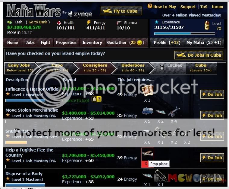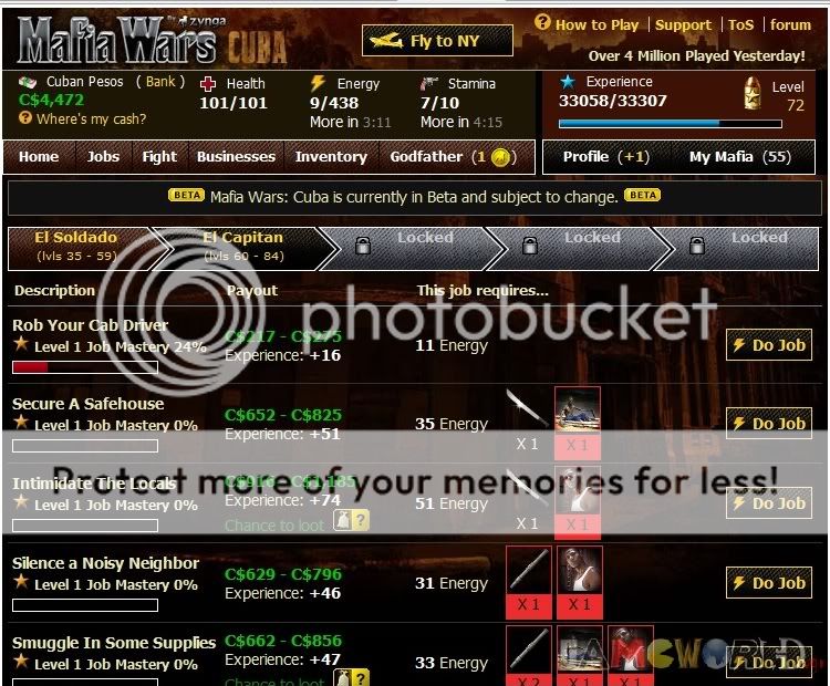 Η διαχρονικότητα του Mafia Wars έχει να κάνει με το ότι θα χρειαστείτε μεγάλο χρονικό διάστημα ώσπου να ξεκλειδώσετε όλες τις δουλειές, όλα τα αντικείμενα και όλα τα λάφυρα. Όριο στα levels δεν υπάρχει (έχουμε εντοπίσει μέχρι και άτομα με πάνω από 250 Level) και πάντοτε θα συναντάτε διαρκώς νέα αντικείμενα για αγορές και νέες προκλήσεις. Επιπλέον, όσο ανεβαίνετε level, τόσο θα γίνεστε στόχος χτυπήματος από άλλους χρήστες. Από το Level 35 και μετά, θα σας επιτραπεί να ταξιδέψετε από την Νέα Υόρκη στην Κούβα και να πραγματοποιήσετε κι εκεί δουλειές στις οποίες θα διατηρήσετε όλα τα στατιστικά σας αλλά θα χάσετε τα χρήματα που έχετε, καθώς θα ισχύει μόνο το νόμισμα της Κούβας και όχι το δολάριο.