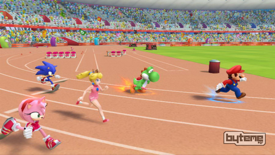 Τα mini-games/αγωνίσματα που διαθέτει είναι πάμπολλα ενώ διαφορετικό τόνο προσδίδουν τα dream events τα οποία ξεφεύγουν κάπως από το ολυμπιακό πνεύμα που διακατέχει το παιχνίδι, όντας συν τοις άλλοις και διασκεδαστικότερα. Προσωπικά, να σας πω την αλήθεια, περισσότερο ευχαριστήθηκα αυτά παρά τα αμιγώς ολυμπιακά events. Τα τελευταία πάντως διεξάγονται σε τοποθεσίες εμπνευσμένες από τις πραγματικές, έτσι όπως θα είναι αυτές το επόμενο καλοκαίρι τουλάχιστον διότι τώρα το Λονδίνο είναι ένα απέραντο εργοτάξιο. Τα γραφικά παίζουν στα ίδια λίγο-πολύ επίπεδα με τα προηγούμενα παιχνίδια της σειράς (άντε να ‘ναι ελάχιστα βελτιωμένα, ξέρω ‘γω), όντας ό,τι πρέπει για τα κυβικά του παιχνιδιού ενώ συμπαθής κρίνεται και ο ηχητικός τομέας με ένα προβλεπόμενο soundtrack και χαρωπά εφέ.