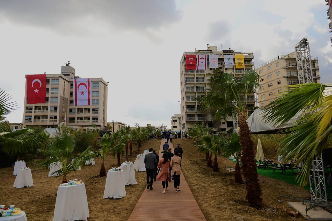 Στην παραλία των κατεχόμενων Βαρωσίων είχαν στηθεί τραπέζια ροτόντες καθώς και ξύλινα τραπεζάκια, όπου προγραμματίστηκε να παρατεθεί γεύμα προς τιμή του προέδρου, ενώ ακριβώς πάνω στην όχθη, διαμορφώθηκε ειδικά ο χώρος για την υποδοχή του Ερντογάν και των Τούρκων αξιωματούχων. Έντονη ήταν η παρουσία του στρατού και της αστυνομίας του κατοχικού καθεστώτος.