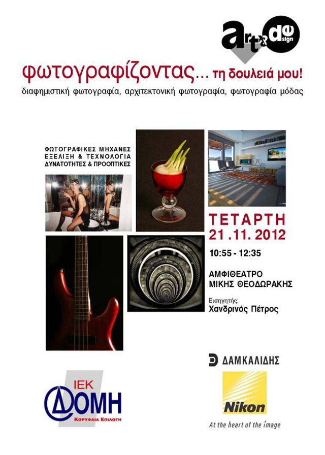 Στο πλαίσιο της παρουσίασης του κου Χανδρινού, θα αναπτυχθεί και ο ρόλος της φωτογραφίας στις εφαρμοσμένες τέχνες.