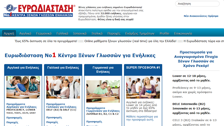 20 χρόνια επιτυχημένης παρουσίας στο χώρο τις εκπαίδευσης ενηλίκων συμπληρώνουν τα Φροντιστήρια Ξένων Γλωσσών Ευρωδιάσταση και προσφέρουν όλα τους τα προγράμματα με πολύ σημαντικές εκπτώσεις που φτάνουν έως και 50%.