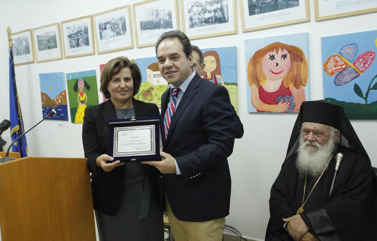 Στις 18:00, το απόγευμα, σήμερα κατά τη διάρκεια εκδήλωσης στο Δημαρχείο Αγίου Ευστρατίου, η Περιφερειάρχης Βορείου Αιγαίου Χριστιάνα Καλογήρου παρουσία του Μακαριωτάτου Αρχιεπισκόπου Αθηνών και πάσης Ελλάδος κ.κ. Ιερωνύμου και της Δημάρχου του νησιού Μαρίας Κακαλή, απένειμε τιμητική διάκριση στην «Αποστολή» για την προσφορά της υπογραμμίζοντας σε ομιλία της την πολύτιμη συμβολή της στην αντιμετώπιση κοινωνικών και οικονομικών προβλημάτων των νησιών του Βορείου Αιγαίου.