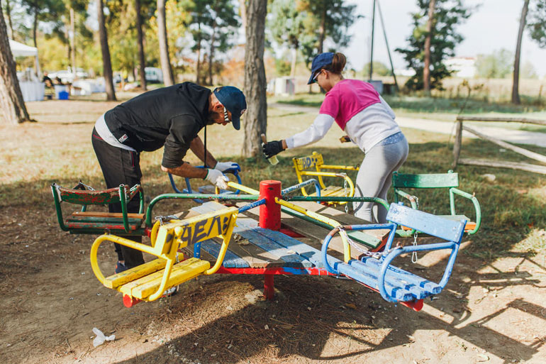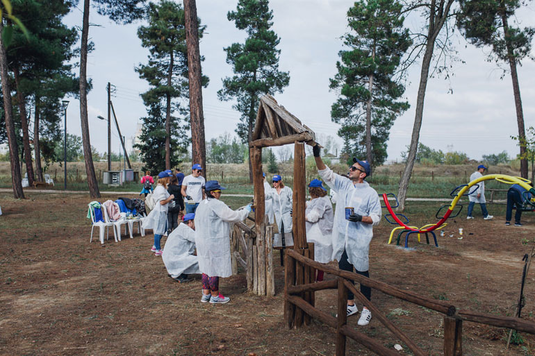 Αντίστοιχα, την Κυριακή 4 Νοεμβρίου 2018, σε συνεργασία με το Δήμο Λάρισας, οι 150 εργαζόμενοι του εργοστασίου μαζί με τις οικογένειές τους ανέλαβαν την αναμόρφωση και τον καλλωπισμό της παιδικής χαράς του Αισθητικού Άλσους στην περιοχή του Αλκαζάρ.