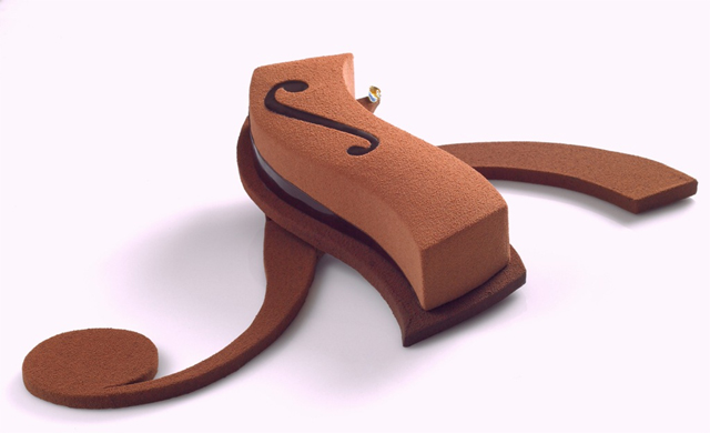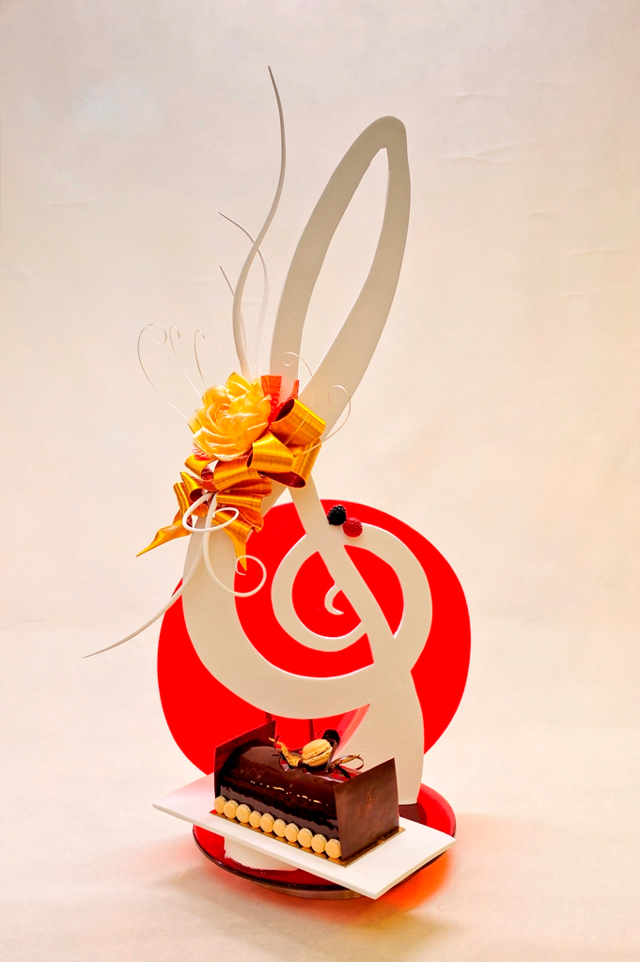 Πάθος του η μουσική … στο πιάτο. Νότες, παρτιτούρες, κλειδί του Σολ, με την εφήμερη γοητεία ενός επιδορπίου.