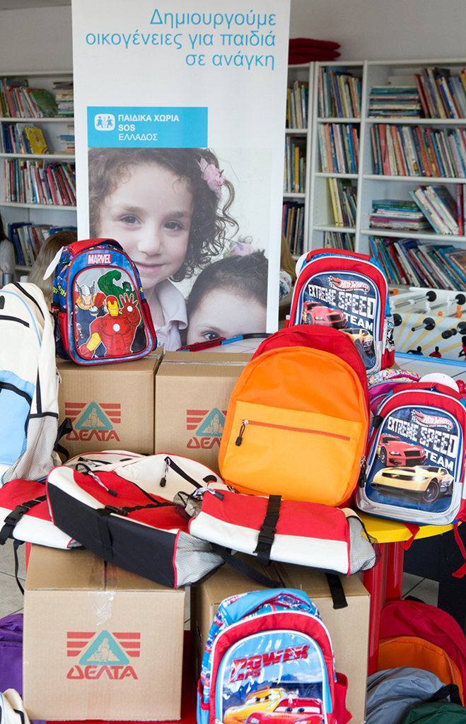 Η ΔΕΛΤΑ στηρίζει το έργο των Παιδικών Χωριών SOS και των Μητέρων SOS, προσφέροντας σε τακτική βάση γάλα και γιαούρτι για την κάλυψη των αναγκών των παιδιών που διαμένουν στις δομές των Παιδικών Χωριών SOS στην Αττική και εξασφαλίζοντας, με την προσφορά αυτή, τα βασικά για τη σωστή ανάπτυξη των παιδιών διατροφικά αγαθά. Φέτος το Σεπτέμβριο, η ΔΕΛΤΑ, θέλοντας να ενισχύσει περισσότερο τη συνεισφορά της, υλοποίησε την πρωτοβουλία «ΣΧΟΛΙΚΑ ΧΑΜΟΓΕΛΑ», με στόχο να καλύψει όλες τις ανάγκες των παιδιών των Παιδικών Χωριών SOS στην Αττική με σχολικά είδη.