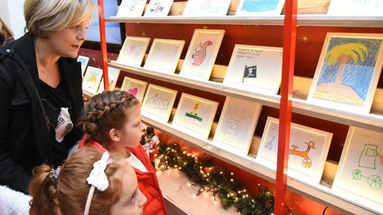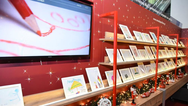 Οι ζωγραφιές με τις ευχές των παιδιών από 14 Κέντρα Στήριξης και 14 Σπίτια «Του Χαμόγελου του Παιδιού» σε όλη την Ελλάδα, βρίσκονται σε τέσσερις χριστουγεννιάτικες εκθέσεις που έχει δημιουργήσει ο ΟΠΑΠ σε εμπορικά πολυκαταστήματα, στην ιστοσελίδα www.omadaprosforas.gr, καθώς και στη δωρεάν εφαρμογή «Ομάδα Προσφοράς ΟΠΑΠ».