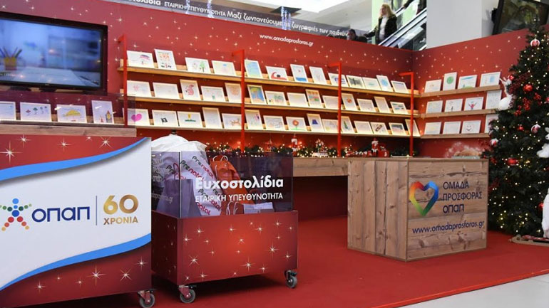 Ο ΟΠΑΠ συνεχίζει για πέμπτη χρονιά τη μεγάλη γιορτή προσφοράς και αγάπης και καλεί τον κόσμο να επιλέξει τα Ευχοστολίδια για να κάνει πραγματικότητα τις ζωγραφιές–χριστουγεννιάτικες ευχές των παιδιών από τον οργανισμό «Το Χαμόγελο του Παιδιού».