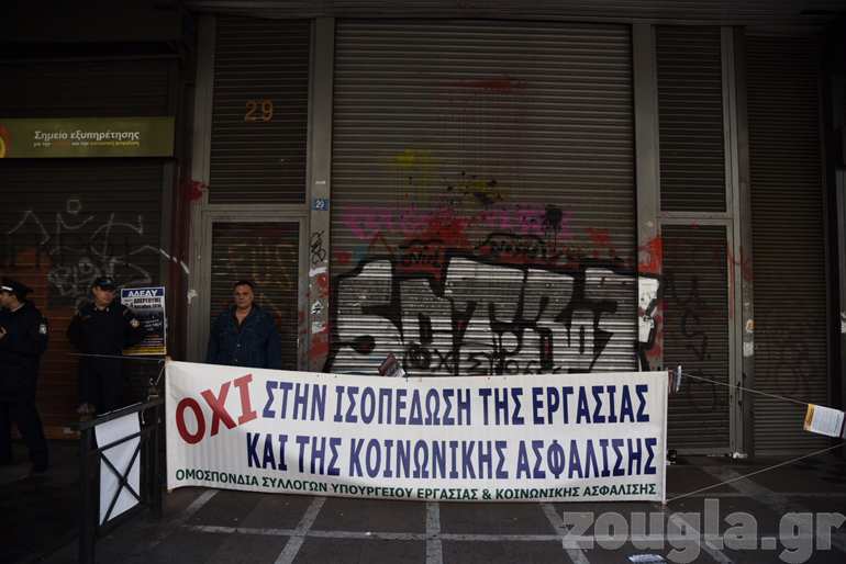Συγκεντρώσεις διαμαρτυρίας των δημοσίων υπαλλήλων στην πλατεία Κλαυθμώνος και στο Υπουργείο Εργασίας πραγματοποιήθηκαν το πρωί της Πέμπτης στο πλαίσιο της 24ωρης απεργίας της ΑΔΕΔΥ.