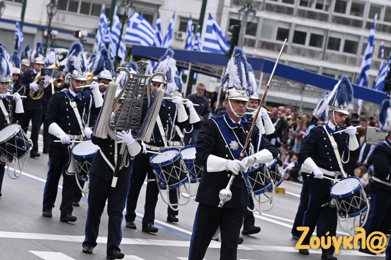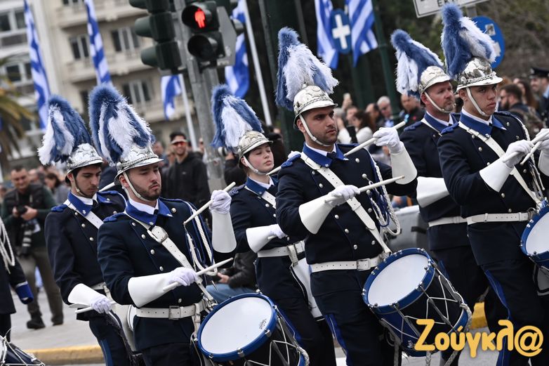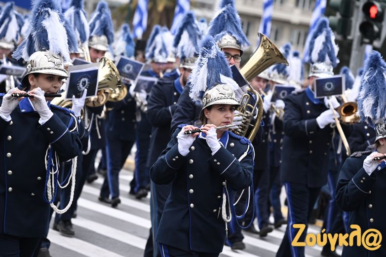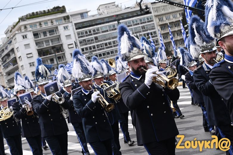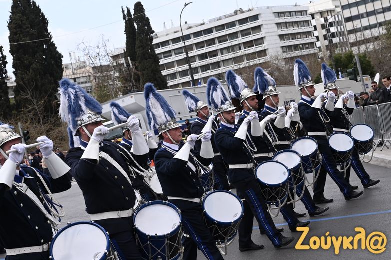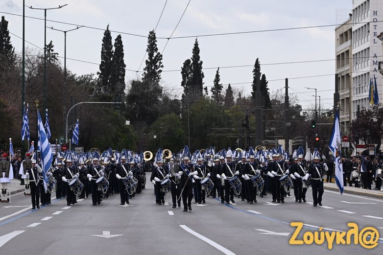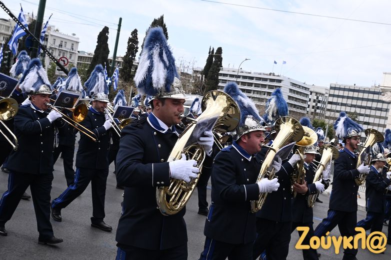 Η Κερκυραϊκή Φιλαρμονική Εταιρία Μάντζαρος άνοιξε την στρατιωτική παρέλαση στο κέντρο της Αθήνας για την επέτειο της 25ης Μαρτίου.