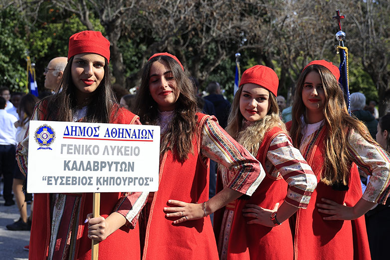 Αγόρια και κορίτσια από δεκάδες σχολεία του λεκανοπεδίου, αλλά και από την επαρχία, όπως ένα σχολείο με μαθητές από τα Καλάβρυτα, παρέλασαν τιμώντας την εθνική επέτειο ενώ χειροκροτήθηκαν από πλήθος κόσμου που έδωσε όπως κάθε χρόνο το παρόν στην παρέλαση.