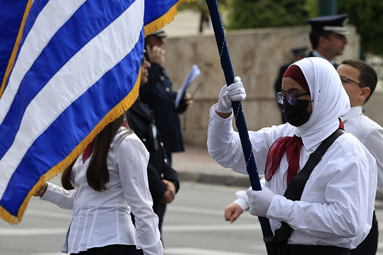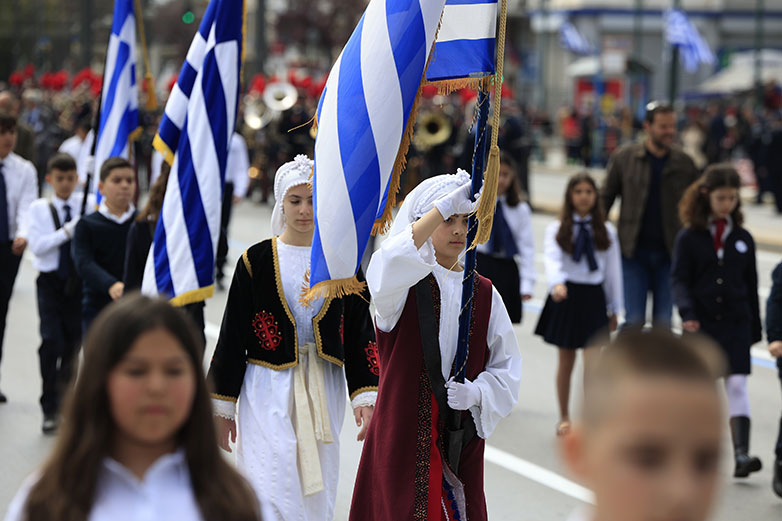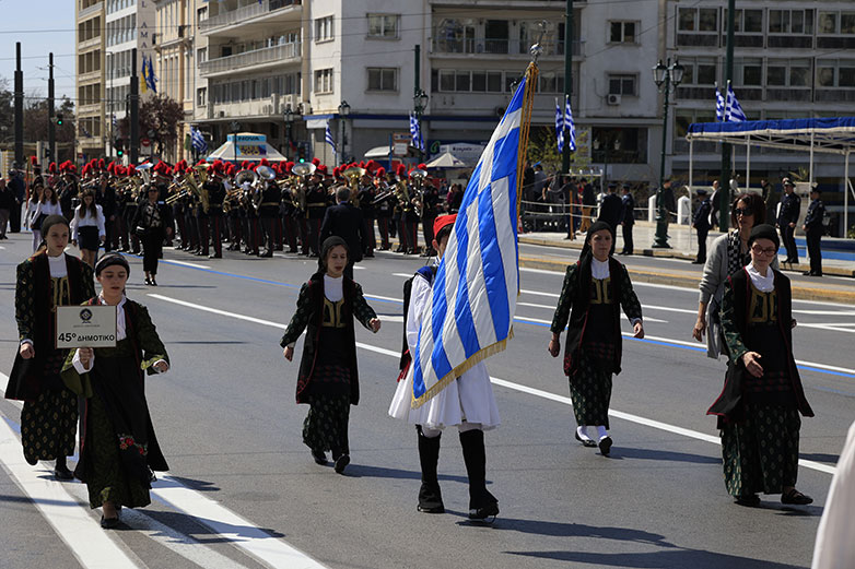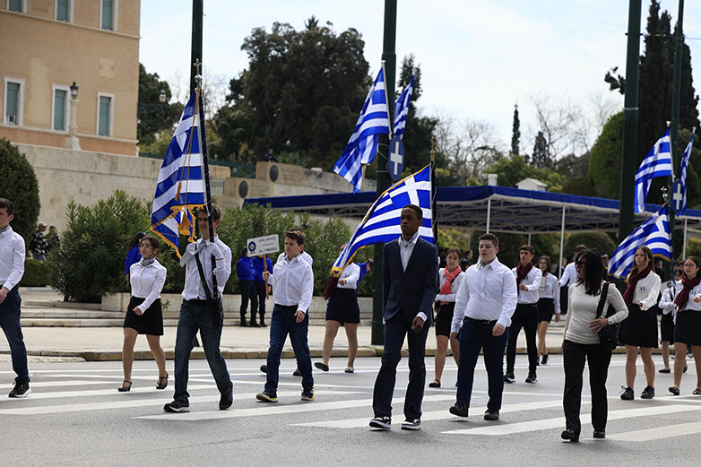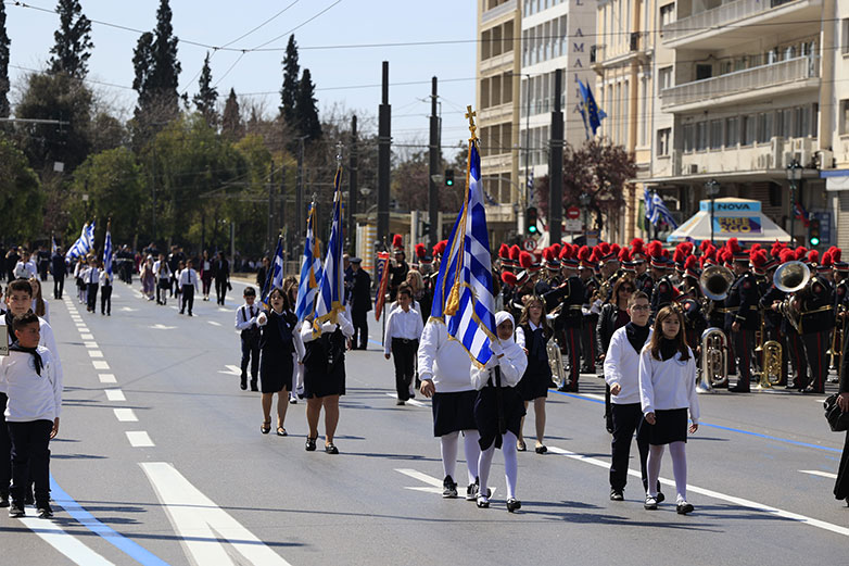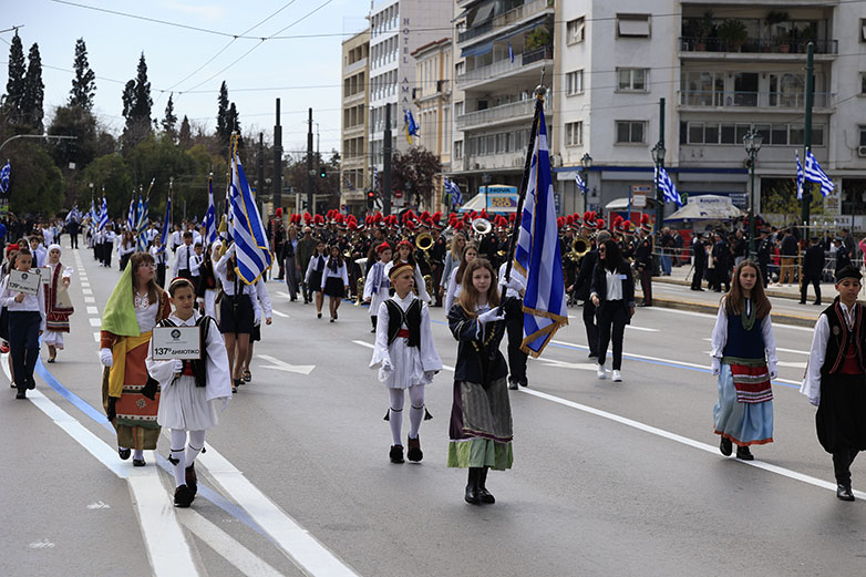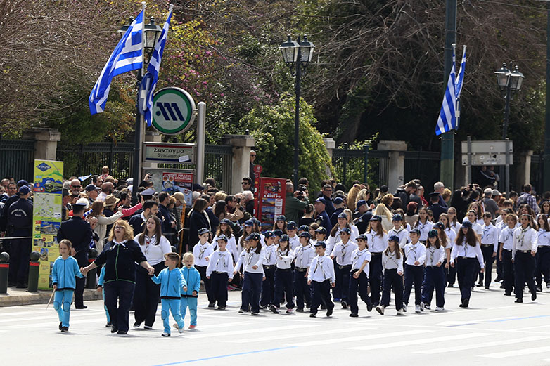 Σε ατμόσφαιρα συγκίνησης και εθνικής υπερηφάνειας πραγματοποιήθηκε στο κέντρο της Αθήνας η μαθητική παρέλαση για την επέτειο του εορτασμού της 25ης Μαρτίου.
