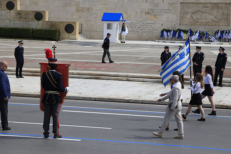 Προηγήθηκε η κατάθεση στεφάνων από την πολιτική και στρατιωτική ηγεσία στο Μνημείο του Αγνώστου Στρατιώτη, ενώ το παρόν έδωσε ο υπουργός Παιδείας και Θρησκευμάτων, Κυριάκος Πιερρακάκης.