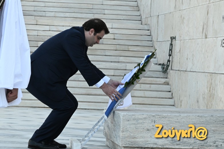 Πριν από την έναρξη της παρέλασης, στεφάνι στο μνημείο κατέθεσαν μεταξύ άλλων ο υπουργός Παιδείας, Θρησκευμάτων και Αθλητισμού, Κυριάκος Πιερρακάκης ο περιφερειάρχης Αττικής Γιώργος Πατούλης, εκ μέρους της Βουλής ο Δημήτρης Σταμάτης, από την αξιωματική αντιπολίτευση η Αθηνά Λινού και από το ΠΑΣΟΚ ο Παναγιώτης Δωδώνης.