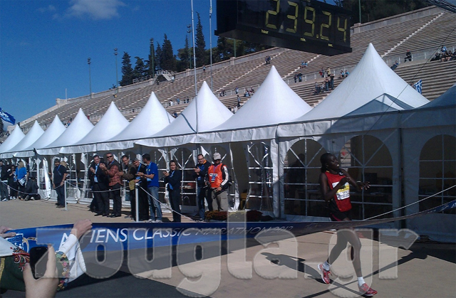 Πρώτος τερμάτισε Κενυάτης ο Ρέιμοντ Κιμπουτάι Μπετ στον επετειακό Μαραθώνιο της Αθήνας που σημειώνει ρεκόρ συμμετοχών. Ο 28χρονος αθλητής βελτίωσε την ατομική επίδοση του, τερματίζοντας στο Παναθηναϊκό Στάδιο σε χρόνο δύο ώρες, έντεκα λεπτά και 35 δευτερόλεπτα. Να σημειωθεί ότι ο ίδιος είχε κερδίσει τον Μαραθώνιο Αθηνών και το 2010.
