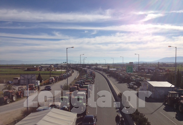 Συνολικά περισσότερα από 1.500 είναι τα τρακτέρ που είναι παρατεταγμένα στο σημείο (σ.σ.: κόμβος Νίκαιας), ενώ σε πολλή κοντινή απόσταση υπάρχουν ισχυρές αστυνομικές δυνάμεις, προκειμένου να αποτρέψουν τους αγρότες από μία εκ νέου αιφνιδιαστική κίνηση προς την ΠΑΘΕ.