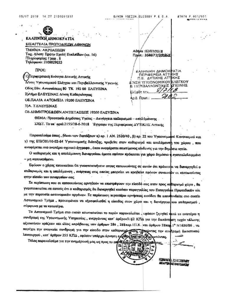 Εντολή της Εισαγγελίας Πρωτοδικείου Αθηνών για αυτεπάγγελτο καθαρισμό της εγκαταλελειμμένης κατοικίας που δεν εκτελέστηκε ποτέ από τον δήμου Ελευσίνας.