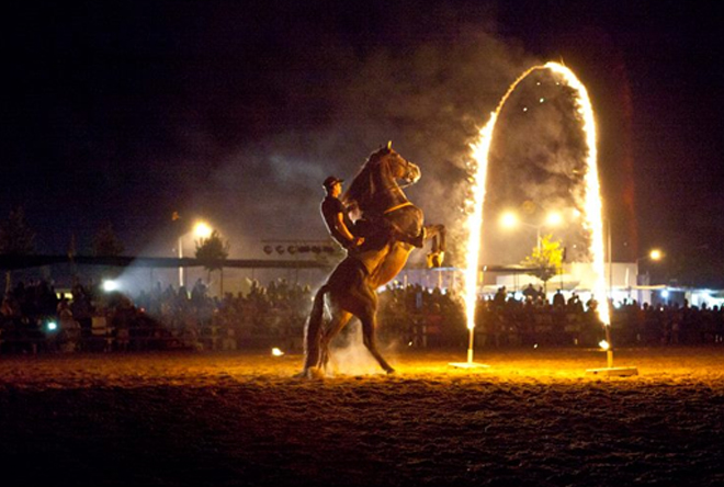 Σήμερα ένα υπέροχο σόου με άλογα από όλη την Ελλάδα μπαίνουν στο στίβο και μαγεύουν το πλήθος, πανέμορφα άλογα πολλών φυλών, δυνατή μουσική φωτιές και πάνω από 5.000 θεατές να χειροκροτούν είναι τα συστατικά του βραδινού σόου.