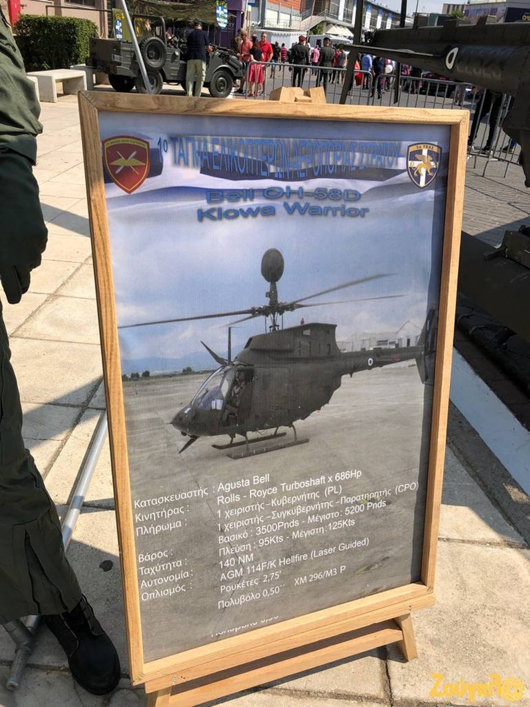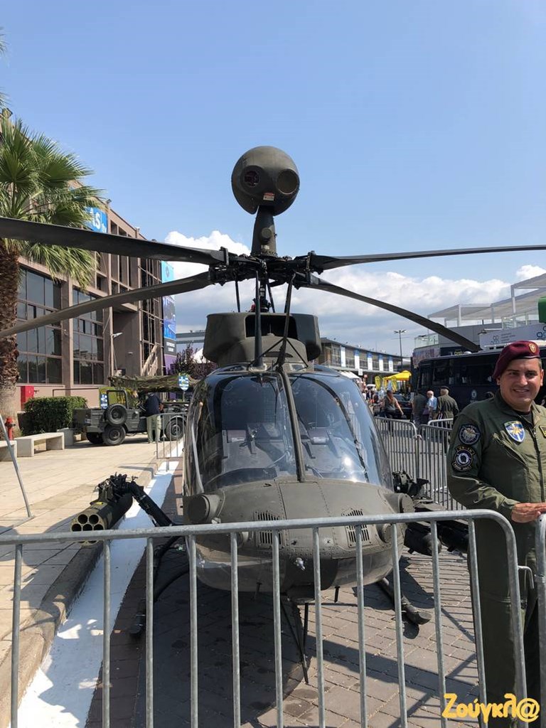 Το νέο «γεράκι» της Αεροπορίας Στρατού, το ελικόπτερο OH-58D KIOWA WARRIOR, έχουν την ευκαιρία να γνωρίσουν από κοντά οι επισκέπτες της 84ης Διεθνούς Έκθεσης Θεσσαλονίκης, αφού το συγκεκριμένο ελικόπτερο, 70 εκ των οποίων παρέλαβε η χώρα μας από τις ΗΠΑ στις αρχές του καλοκαιριού, εκτίθεται στο περίπτερο του Υπουργείο Εθνικής Άμυνας.