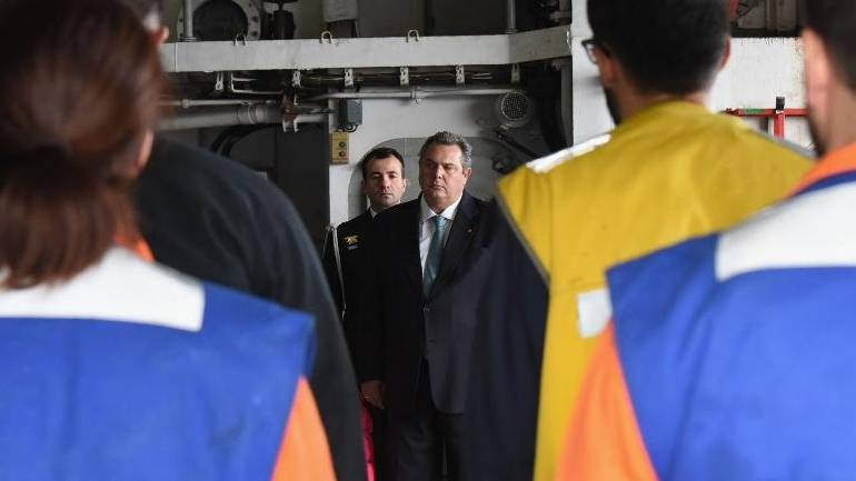 Θέλω, λοιπόν, εκ μέρους του Πρωθυπουργού, της Πολιτικής και Στρατιωτικής Ηγεσίας, να ευχαριστήσω ιδιαίτερα τα Στελέχη των Ενόπλων Δυνάμεων, τα οποία στη θάλασσα, στον αέρα, στη στεριά, 365 ημέρες το χρόνο, 24 ώρες το εικοσιτετράωρο, δίνουν την ψυχή τους για να είμαστε εμείς ασφαλείς. Θέλω να τους πω ένα μεγάλο ευχαριστώ.