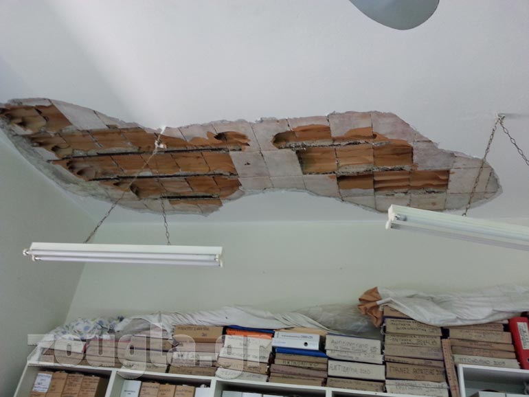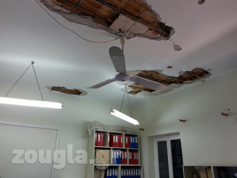 Συγκεκριμένα την 30-04-2015 κατεδαφίστηκε τμήμα της οροφής του ταμείου της οικονομικής υπηρεσίας και από τύχη δεν υπήρξε κάποιος τραυματισμός.