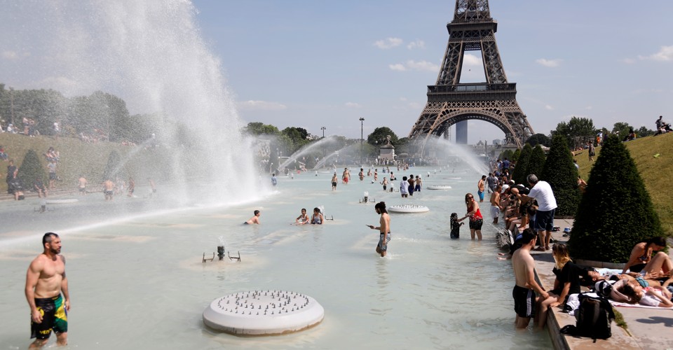 Στο Παρίσι η θερμοκρασία έφτασε τους 42,6 βαθμούς Κελσίου, με τους μετεωρολόγους της γαλλικής υπηρεσίας να κάνουν αναπόφευκτα τη σύγκριση με τη Βαγδάτη, καθώς στην πρωτεύουσα του Ιράκ η μέση θερμοκρασία του Ιουλίου είναι οι 43 βαθμοί.