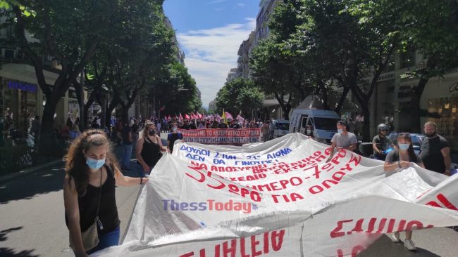 Μαζικές κινητοποιήσεις βρίσκονται σε εξέλιξη στη Θεσσαλονίκη με αφορμή το εργασιακό νομοσχέδιο που προωθεί σήμερα στη Βουλή η κυβέρνηση.