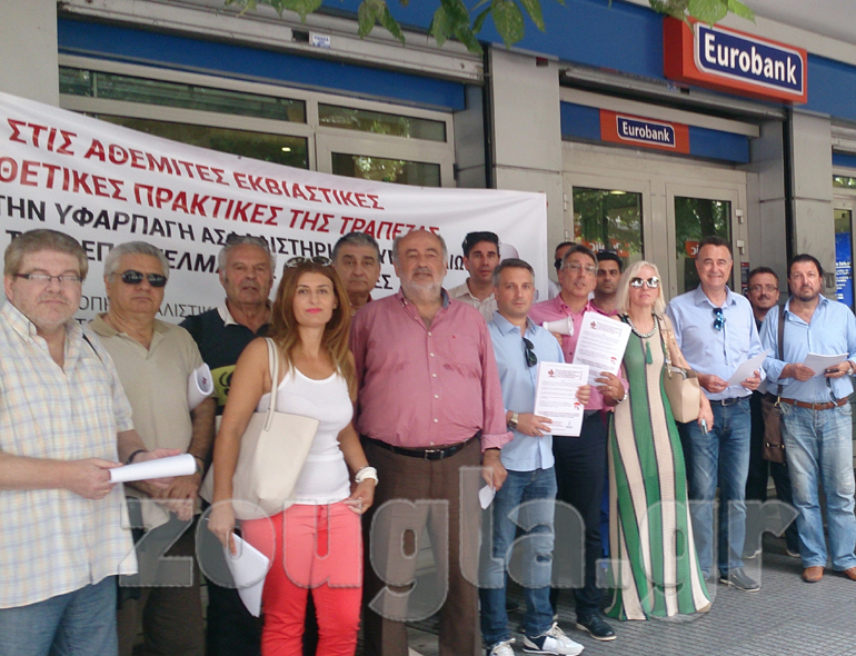 Στον συμβολικό αποκλεισμό δύο υποκαταστημάτων τραπεζών στο κέντρο της Θεσσαλονίκης προχώρησαν το πρωί της Τετάρτης οι ασφαλιστικοί σύμβουλοι και διαμεσολαβητές- μέλη του Επαγγελματικού Επιμελητηρίου Θεσσαλονίκης.