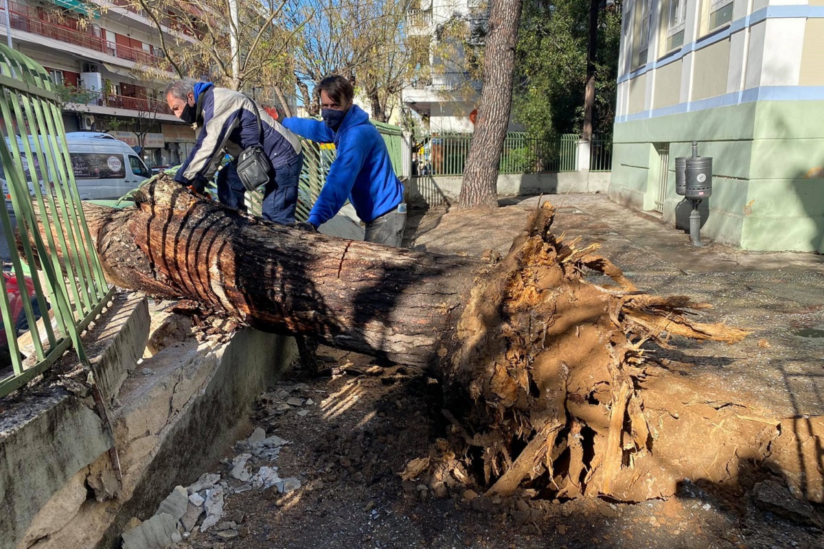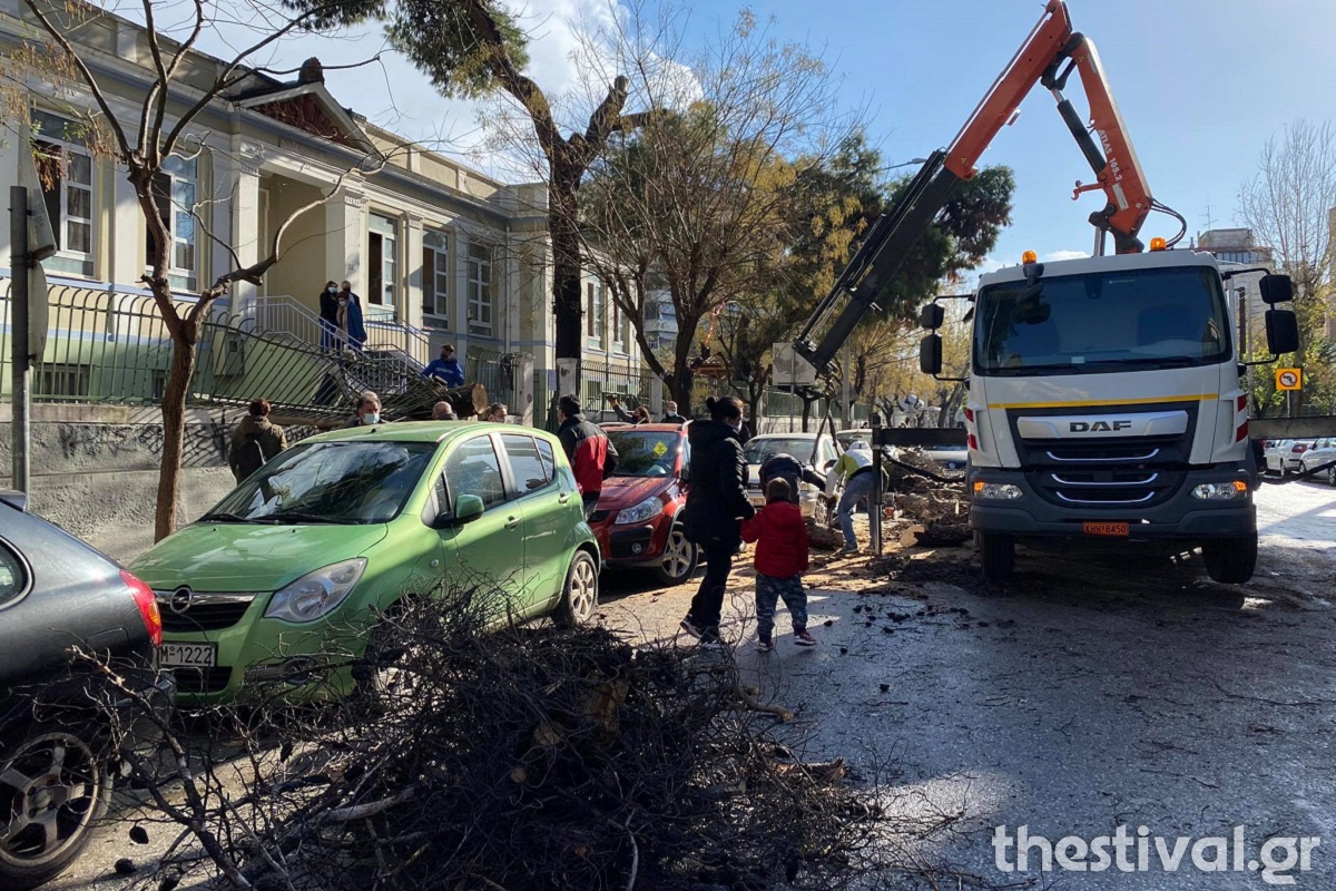 Στο σημείο έσπευσε κλιμάκιο της Πυροσβεστικής, το οποίο ασφάλισε τον χώρο. Στη συνέχεια οχήματα της Διεύθυνσης Πρασίνου του Δήμου Θεσσαλονίκης ανέλαβαν το έργο της κοπής και απομάκρυνσης του δέντρου.