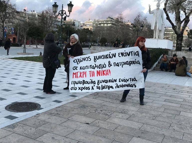 Με κεντρικό σύνθημα «8 Μάρτη διαδηλώνουμε ενάντια στο χρέος και στα μέτρα λιτότητας» οι συμμετέχοντες συγκεντρώθηκαν, στην οδό Εγνατία, μπροστά από άγαλμα του Βενιζέλου και στη συνέχεια πραγματοποίησαν πορεία κρατώντας πανό και φωνάζοντας συνθήματα.