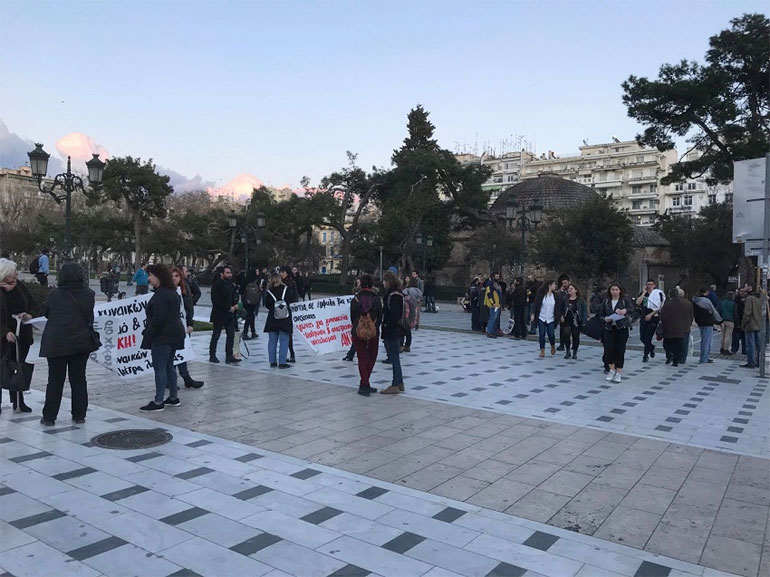 Συλλαλητήριο πραγματοποιήθηκε απόψε στο κέντρο της Θεσσαλονίκης με πρωτοβουλία της Λαϊκής Ενότητας και άλλων αριστερών οργανώσεων και κοινωνικών συλλογικοτήτων, με αφορμή την Παγκόσμια Ημέρα της Γυναίκας.