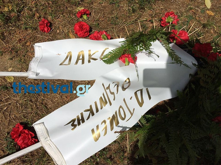 Εκεί ένας εξ αυτών πήρε το στεφάνι της ΔΑΚΕ, το οποίο είχε κατατεθεί νωρίτερα στο Μνημείο του Καπνεργάτη, πλησίον του ΕΚΘ και το πέταξε.