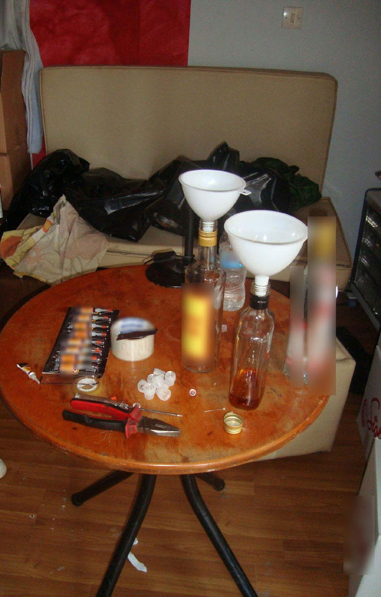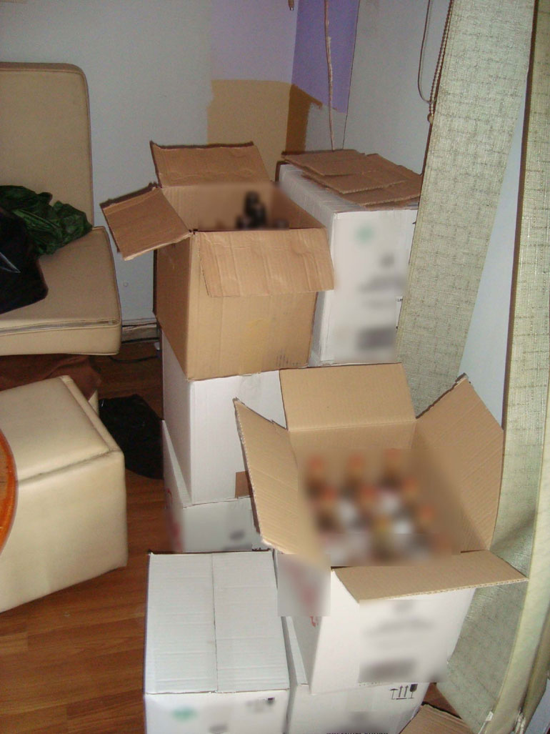 Σημειώνεται ότι μέρος των αλκοολούχων φιαλών που κατασχέθηκαν εισήχθη από το εξωτερικό, χωρίς να έχουν καταβληθεί οι αναλογούντες δασμοί, ενώ άλλες περιείχαν άγνωστης προέλευσης αλκοόλη, η οποία στη συνέχεια μεταγγιζόταν σε κενές φιάλες επώνυμων εταιρειών, τις οποίες ο 45χρονος μάζευε από κάδους απορριμμάτων.