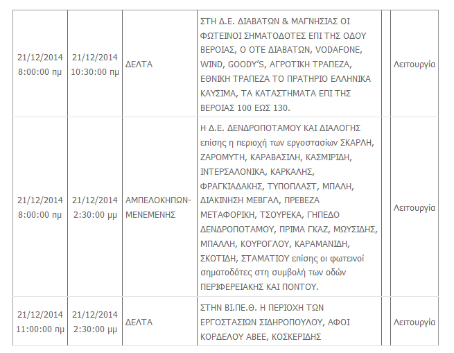 Τα προβλήματα στην ηλεκτροδότηση θα εμφανιστούν από τις 08.00 το πρωί έως τις 14.00 το μεσημέρι στους δήμους Αμπελοκήπων – Μενεμένης και Δέλτα.