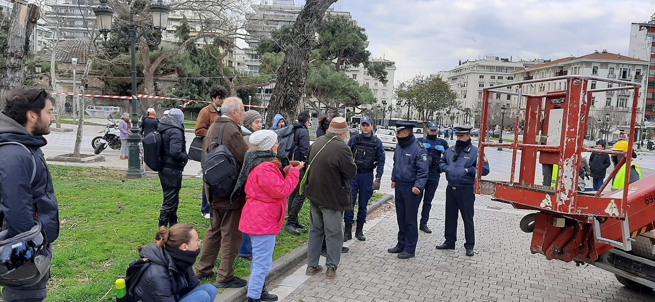 Σε συλλήψεις μετατράπηκαν οι προσαγωγές των 14 διαδηλωτών που κατηγορούνται ότι επιχείρησαν το πρωί, στη διάρκεια διαμαρτυρίας, να εμποδίσουν συνεργείο του δήμου Θεσσαλονίκης να προβεί σε κοπή δέντρων, στην πλατεία Αρχαίας Αγοράς, στο κέντρο της πόλης.