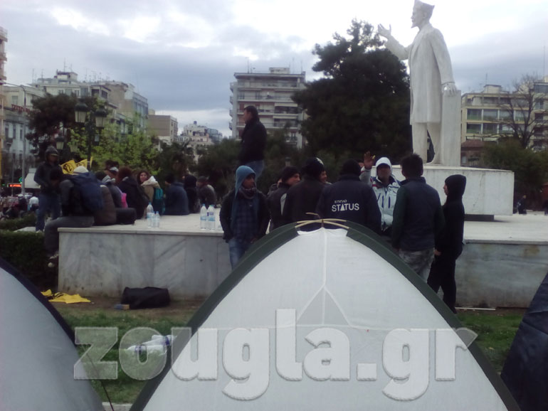 Στο άγαλμα του Βενιζέλου, στην πλατεία Αριστοτέλους, συνέχισαν την Πέμπτη τη διαμαρτυρία τους οι πρόσφυγες και μετανάστες, οι οποίοι νωρίτερα πραγματοποίησαν πορεία από το Κέντρο Φιλοξενίας των Διαβατών, μέσω των οδών Μοναστηρίου και Εγνατίας.