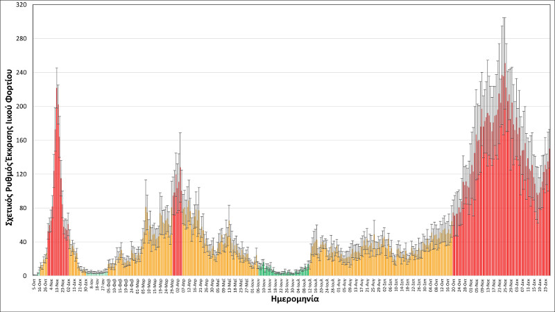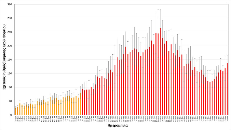 Συνολικά, μέσα σε 8 ημέρες, το φορτίο του άκρως μεταδοτικού στελέχους του ιού δεκατετραπλασιάστηκε και αυτή τη στιγμή φαίνεται πως διπλασιάζεται ανά δύο μέρες, στοιχείο που υποδηλώνει εκθετική αύξηση των περιστατικών στην πόλη. Ήδη, από την ημερομηνία που εντοπίστηκε η παραλλαγή Όμικρον στα λύματα, το συνολικό ιικό φορτίο τους έχει αυξηθεί κατά 57%.