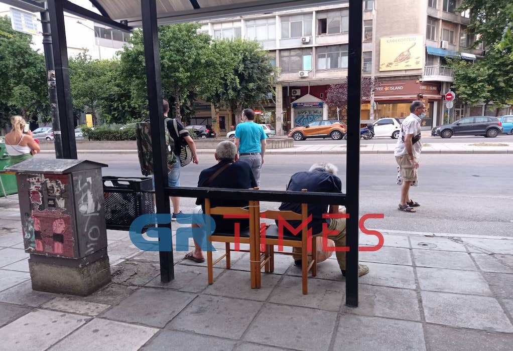 Στις … πατέντες «το έριξαν» αγανακτισμένοι – προφανώς – Θεσσαλονικείς , οι οποίοι βλέπουν εδώ και μέρες να απουσιάζει το παγκάκι από τη στάση λεωφορείων “Πλατεία Δημοκρατίας” στο κέντρο της Θεσσαλονίκης και συγκεκριμένα στην πλατεία Δημοκρατίας. Έδεσαν δύο καρέκλες μεταξύ τους και τις τοποθέτησαν “για τους εργαζόμενους και τους υπερήλικες”, όπως μάλιστα γράφουν σε σχετικό μήνυμα.