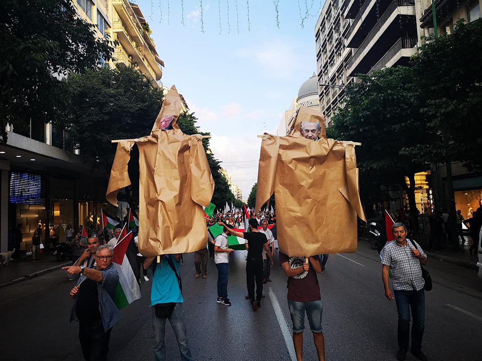 Έκαψαν τα ομοιώματα του Τράμπ και του Μπενιαμίν Νετανιάχου, Πρωθυπουργoύ του Ισραήλ, μαζί με την Αμερικανική και την Ισραηλινή σημαία, οι διαδηλωτές που πραγματοποίησαν πορεία συμπαράστασης στον λαό της Παλαιστίνης, μετά τα πρόσφατα γεγονότα.