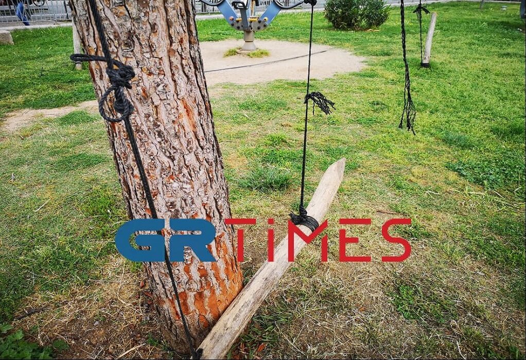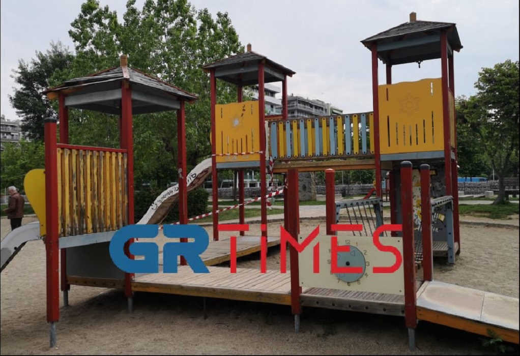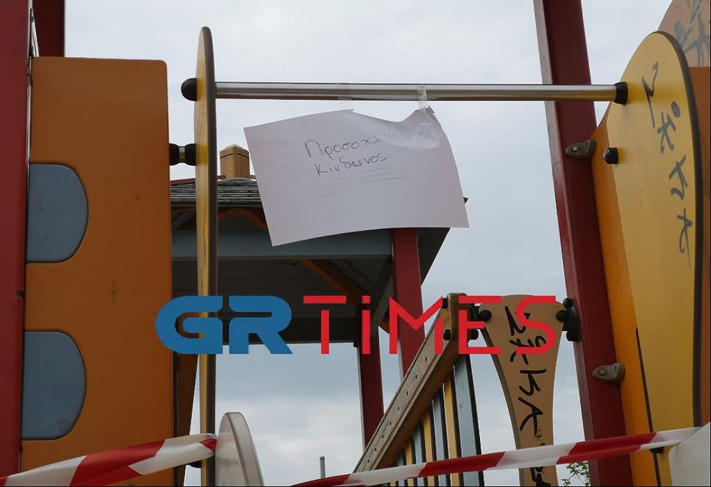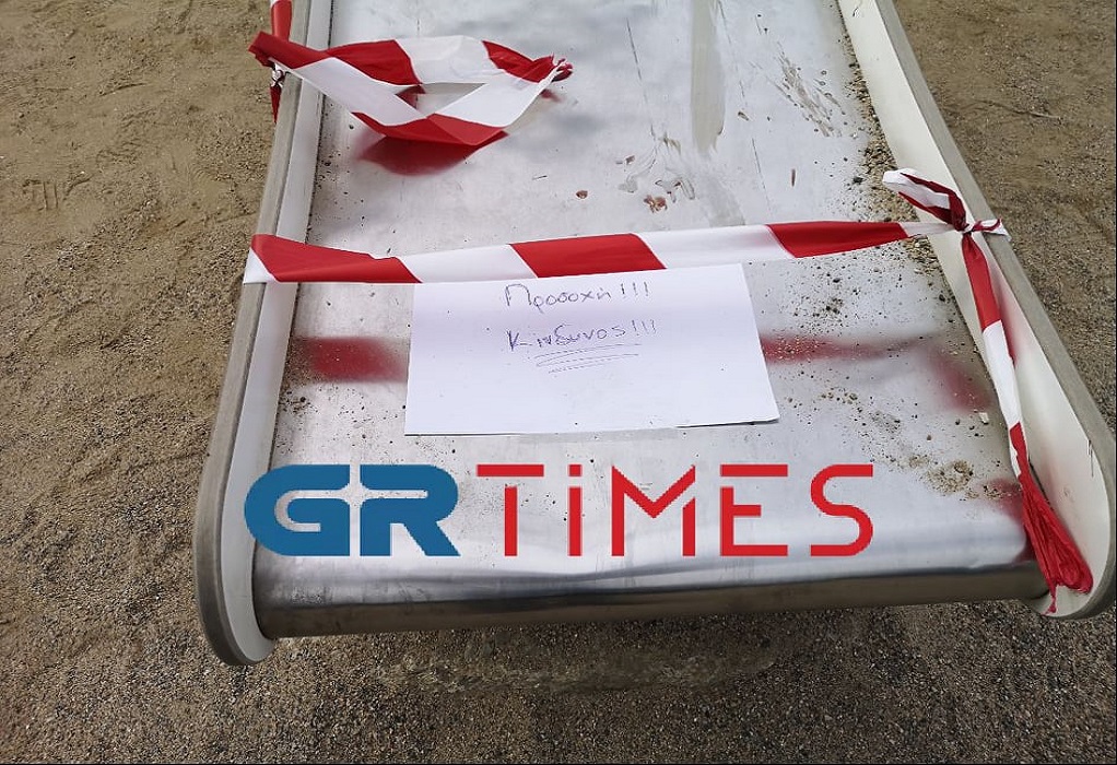 Σε όλες τις πόρτες του χώρου υπάρχουν λουκέτα, ενώ στην τσουλήθρα τοποθετήθηκε κόκκινη κορδέλα και χαρτιά που αναγράφουν «προσοχή κίνδυνος».