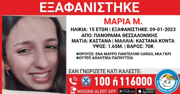 Πρόκειται για την 15χρονη Μαρία Μ. και την 16χρονη Έλενα Κ. που φιλοξενούνταν και οι δύο σε δομή παιδικής προστασίας του Χαμόγελου του Παιδιού, στη Θεσσαλονίκη. Τα κορίτσια εξαφανίστηκαν στις 9 Ιανουαρίου 2023 και η ζωή τους είναι σε κίνδυνο.