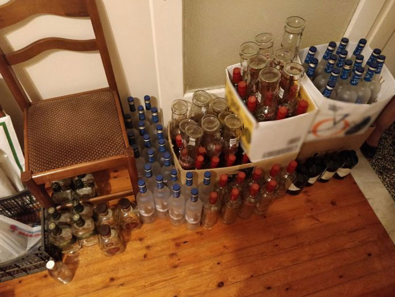 Ειδικότερα, αφού παραλάμβανε κενές φιάλες από διάφορα καταστήματα, τις επαναγέμιζε, είτε με αλκοολούχα ποτά που παρασκεύαζε ο ίδιος, είτε με αλκοολούχα ποτά φθηνότερων επωνυμιών, τα οποία προέρχονταν από γειτονική χώρα και στη συνέχεια τα μεταπωλούσε.