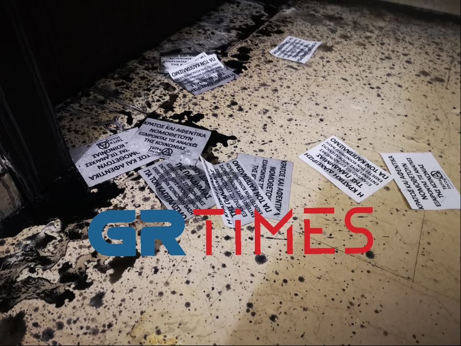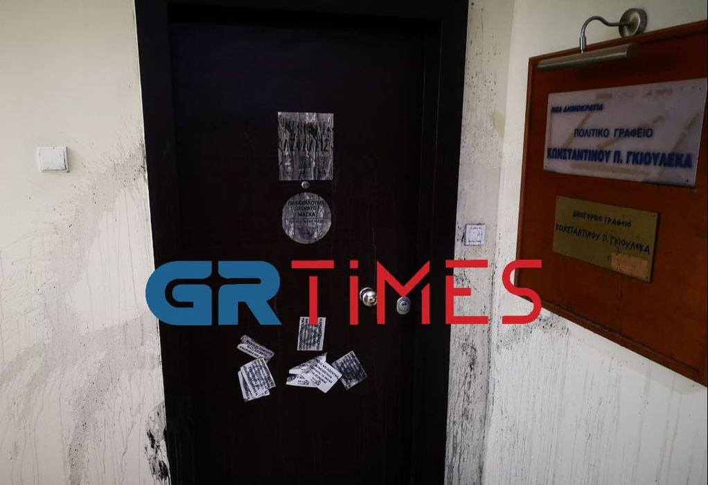 Δύο άτομα, ένας άνδρας και μία γυναίκα, συνελήφθησαν με την κατηγορία ότι πέταξαν μπογιές και τρικάκια στα γραφεία του βουλευτή της Νέας Δημοκρατίας Κωνσταντίνου Γκιουλέκα, της Εθνικής Αρχής Διαφάνειας και του ΕΟΔΥ/4η Υγειονομική Περιφέρεια.